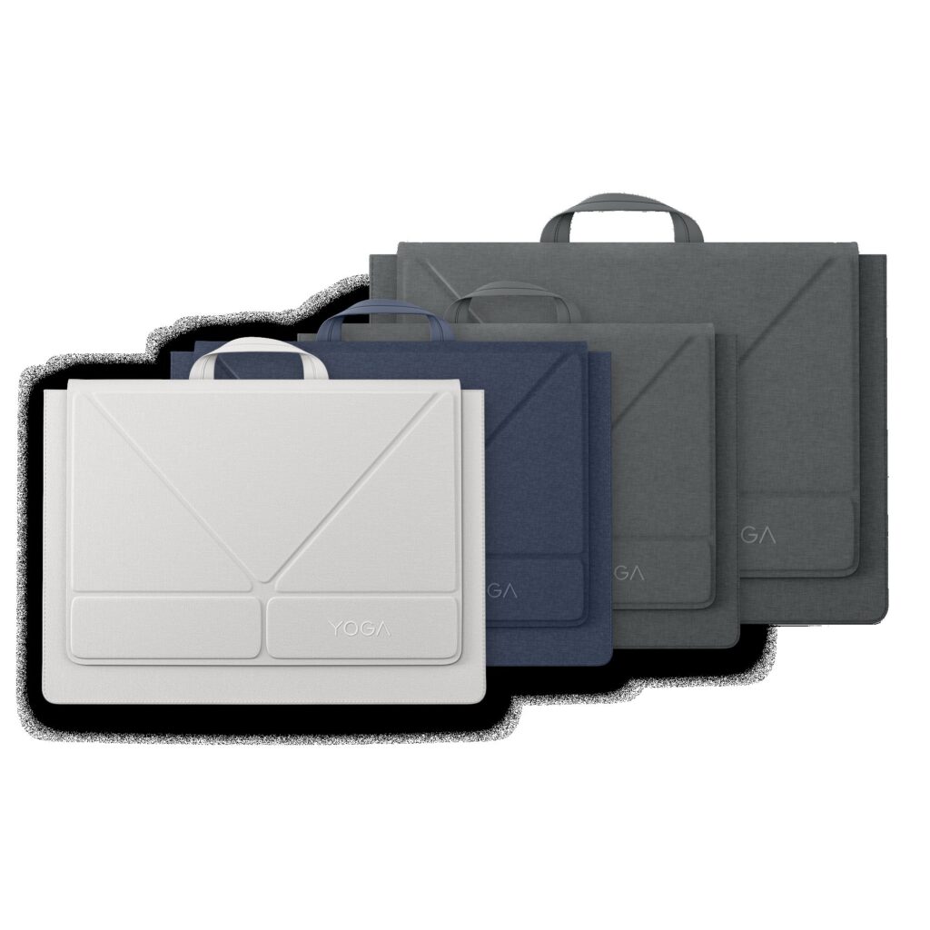 Yoga Tote Sleeve completează portofoliul și oferă o soluție practică de transport pentru dispozitivele Yoga 2-în-1, deoarece se poate transforma într-un suport pentru utilizare ergonomică a laptopului sau tabletei în deplasare. Husa este concepută pentru a transporta laptopul, încărcătorul, Yoga Pen Gen 2, căștile și alte accesorii esențiale zilnice.